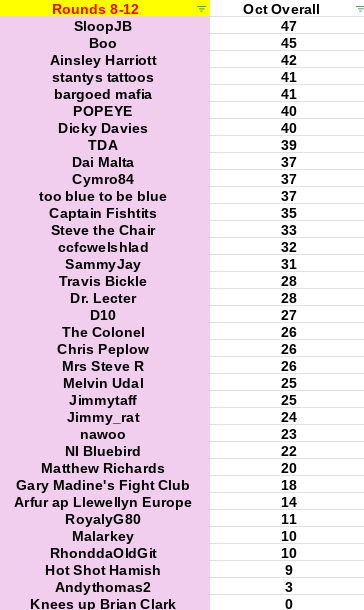 November has started, and we've already got through Week 13 (results for this weekend coming up shortly). So get yourselves right into Sloop and make this another tight contest. We can't be letting him win yet another month!! There's a full 5 weeks still to play for in this month